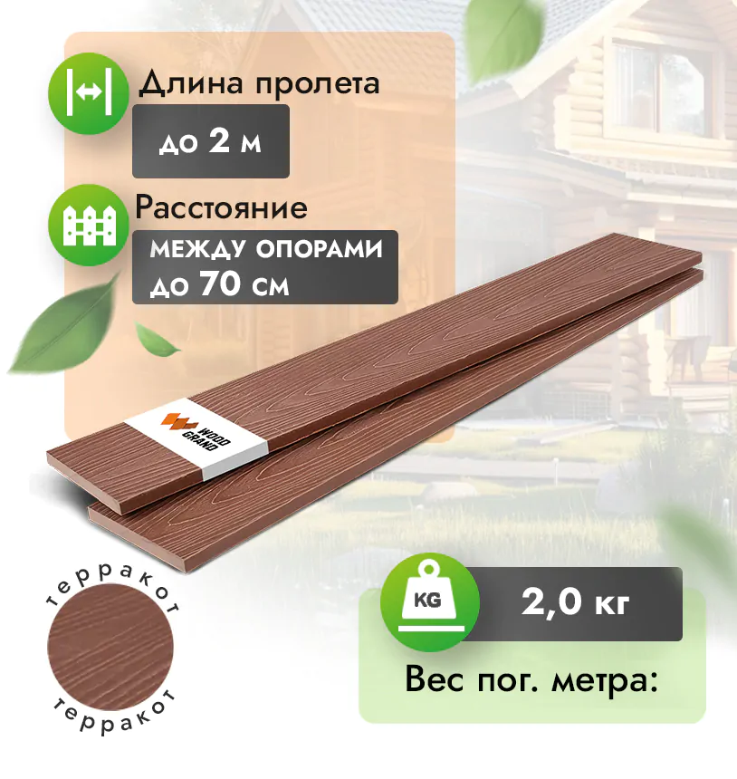 Наши заборные доски из ДПК выдерживают до 3318 кг/м2, влагостойкие, не требуют ухода.